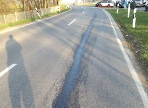 Nach der erfolgten Instandsetzung hat der Fahrer bei der Abfahrt die Ölspur verschleppt und verfahren. -