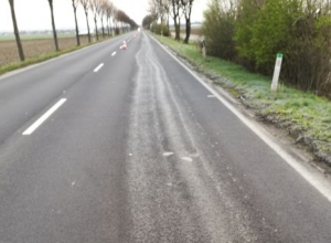 Durch den beigemischten Frostschutz im Kühlwasser war die Straße teilweise spiegelglatt.