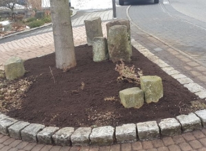 Ein Pkw war im Westerwald auf schneeglatter Fahrbahn in eine Verkehrsinsel geschleudert und gegen einen Baum geprallt. Hierbei wurde mehrere große und schwere Natursteine aus dem Betonfundament gebrochen und das Erdreich durch auslaufendes Öl kontaminiert.