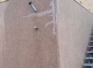 Heizöl ist in Windeck aus der Entlüftungsleitung ausgelaufen und hat die Fassade verschmutzt. Der Kunststeinputz wurde gereinigt.
