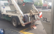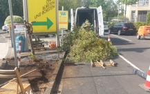 Bei der Befüllung der Erdtanks ist durch einen technischen Defekt eine größere Menge Kraftstoff ausgetreten und hat die Zapfsäulen und das Betriebsgelände großflächig verschmutzt. Es gelange über die Entlüftungsleitung auch Kraftstoff im Bereich einer Verkehrsinsel in das Erdreich. In Abstimmung mit dem vom Spediteur beauftragten Sachverständigen wurden die Reinigungs- und Sanierungsarbeiten ausgeführt. Im Einsatz waren eine ÖLSPURHEXE, Absetzkipper, Gerätewagen und Minibagger. Das kontaminierte Erdreich und die Bepflanzung wurden abgetragen und in öldichte Mulden verladen. Die befestigen Flächen wurden mittels Handlanze und Reinigungsmaschine gereinigt. Es wurde ein neuer Baum geliefert und gepflanzt und das Kiesbett wieder aufgefüllt.