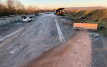 So eine Unfallstelle sieht man auch nicht alle Tage. 4 LKW und zahleiche PKW waren beteiligt. Die Unfallstelle wurde mittels Kehrmaschine grob gereinigt und anschließend mit zwei Ölspurreinigungsmaschinen gereinigt. Die Verschmutzung war großflächig verteilt und verschleppt worden. Es folge ein stundenlanger aufwendiger Reinigungseinsatz.